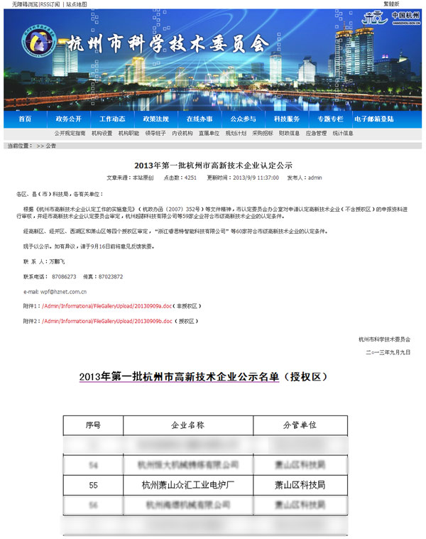 熱烈祝賀杭州蕭山眾匯工業電爐廠通過2013年第一批杭州市高新技術企業認定,成為杭州市高新技術企業。