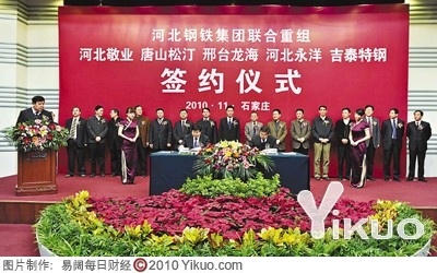 11月11日河北鋼鐵集團以“漸進式權融合”模式與河北敬業、唐山松汀、邢臺龍海、河北永洋、吉泰特鋼家民營鋼鐵企業簽署聯合重組協議據了解這河北鋼鐵首次實現有企業與民營企業間跨所有制聯合重組標志著該省鋼鐵產業結構調整取得重大突破據悉這家民企粗鋼產能超萬噸重組之后河北鋼鐵集團將成為該省首個銷售收入突破民幣特大型企業集團。