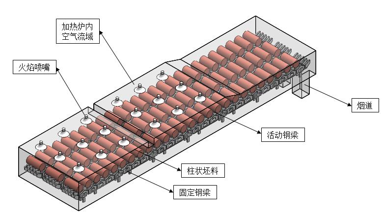 步進式加熱爐是一種靠爐底或水冷金屬梁的上升、前進、下降、后退的動作把料坯一步一步地移送前進的連續加熱爐。爐子有固定爐底和步進爐底,或者有固定梁和步進梁。前者叫做步進底式爐,后者叫做步進梁式爐。軋鋼用加熱爐的步進梁通常由水冷管組成。步進梁式爐可對料坯實現上下雙面加熱。